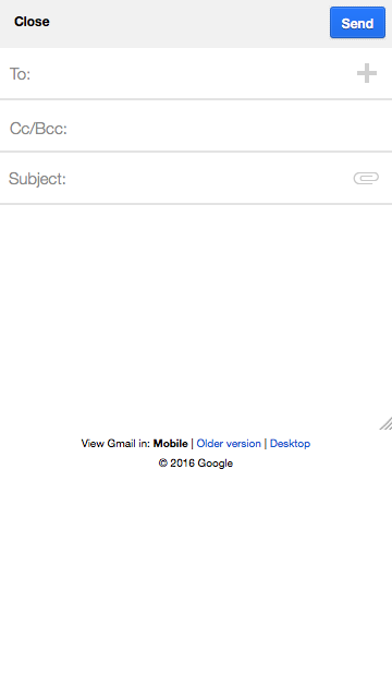 Let's take another UI element of gmail exhibiting the same issue: The new email interface. Currently, we get in Firefox Android (without user agent override), the following rendering: